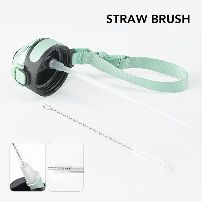 - Humanized Design: The one-hand operation button allows for easy access to water. Highly suitable for boys and girls, and all ages. The flip-top lid of the insulated bottle is used a secure lock, making it dust-free and leak-proof. The included straw brush makes maintaining your bottle's cleanliness uncomplicated and efficient.