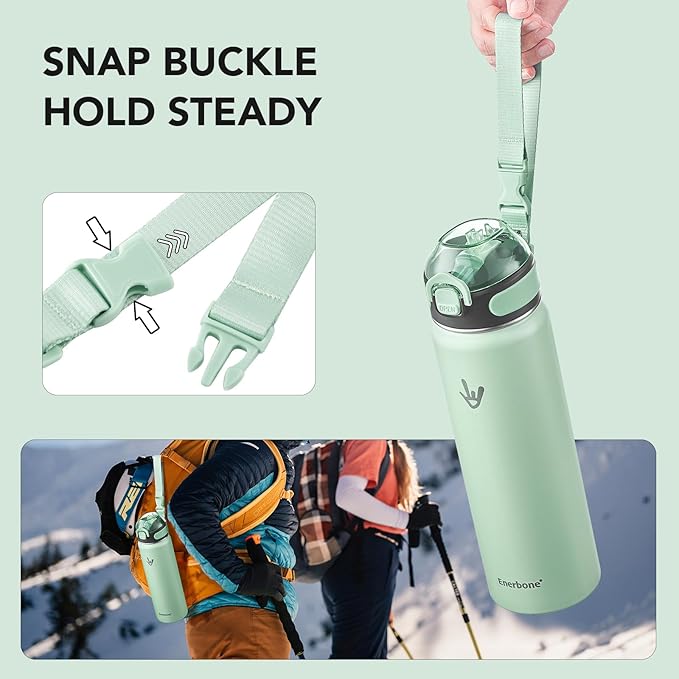 Enerbone 24 oz Insulated Water Bottle, Stainless Steel Bottle with Carrying Strap, Double-Wall Vacuum Insulation Design, Leakproof Sports Bottle with Straw, Keep Drinks Cold or Hot for Hours