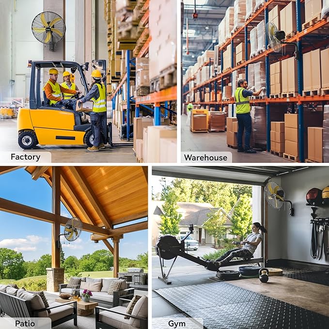 - Easy to Assembly: Simply mount using the heavy duty wall fan and accessories provided. Only few steps to assemble the wall fan with quickly. This is an industrial wall mounted fan, the noise is louder than home fans, but less noisy than most of the same size industrial fans