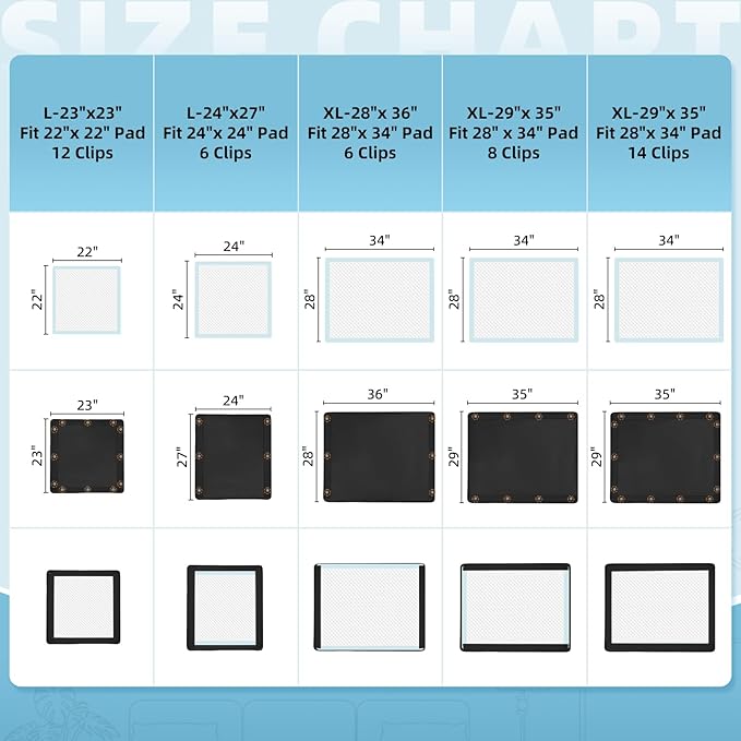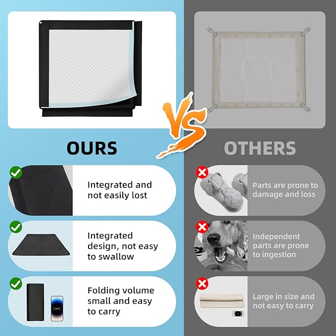 Dog Pee Pad Holder, Puppy Pad Holder, Oxford Cloth Material Soft & Durable, 12 Magnetic Clips, Fits 22" x 22" Pad, Black