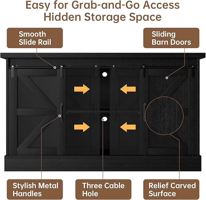 55-75 Gallon Fish Tank Stand with Sliding Barn Doors & Power Outlet, Heavy Duty Aquarium Stand with Cabinet Storage for Fish Tank, Turtle Tank, Reptile Terrarium, 1000LBS Capacity, Black