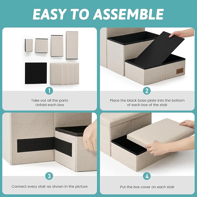- Easy Assembly & Portability: These dog stairs come with a simple step-by-step assembly guide and a linking system for easy setup. They can also be conveniently folded for storage when not in use.