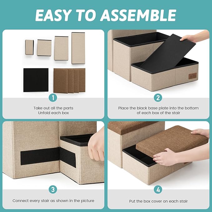 - Built for Stability & Joint-Friendly Comfort: Crafted with wear-resistant fabric, high-density foam, and durable MDF, these stairs provide unmatched stability and comfort. The non-slip bottom ensures safety, supporting pets up to 180 lbs while reducing stress on joints and paws. Perfect for pets of all ages and sizes!