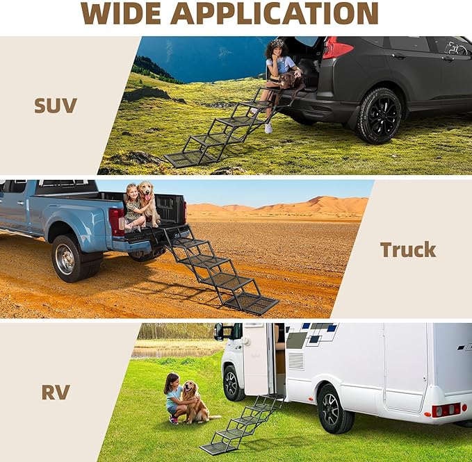 - Upgraded Dog Car Ramp for Large Dogs: Our dog ramp can be adjusted to a height between 20" and 22", low angle and normal stretch to match different heights of cars, ideal for older, disabled or injured dogs to easily access cars, SUVs, and trucks