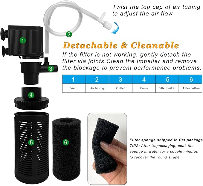 - 【Easy to Install】- The filter parts are detachable and easy to clean, comes with mounting suction cups for easy placement in an aquarium