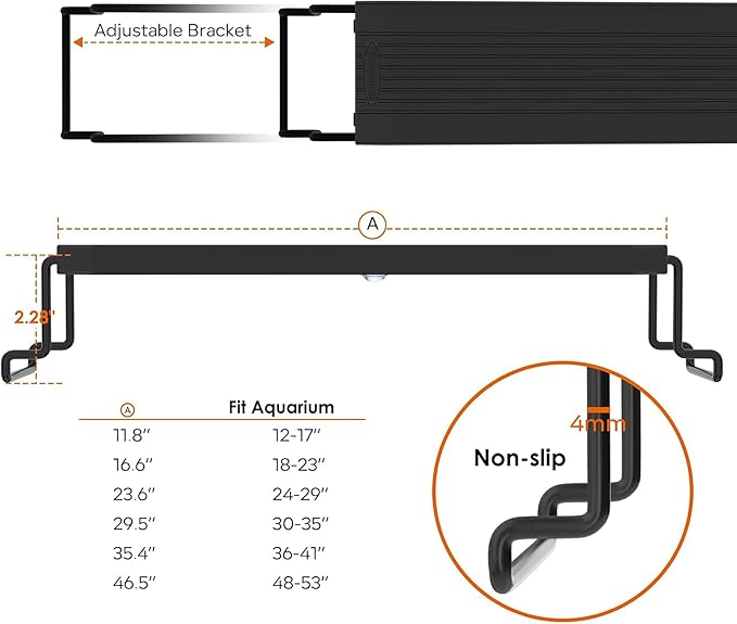 - 【IP67 Waterproof and Extendable Bracket】 With an IP67 waterproof, the light offers enhanced safety and durability in aquatic environments. The extendable brackets allow flexible adjustments to fit various aquarium sizes, making installation more convenient and adaptable to different tank dimensions.
