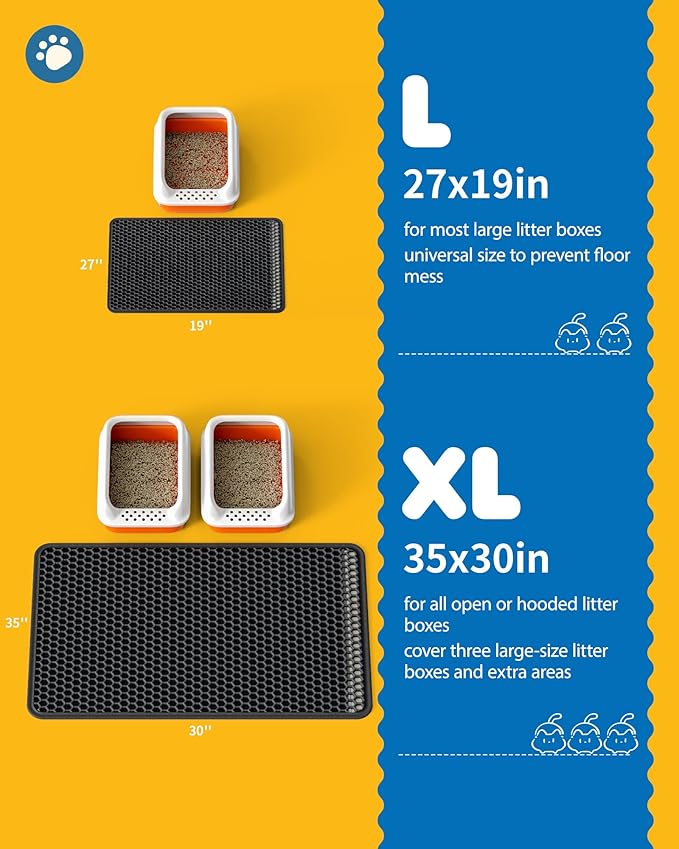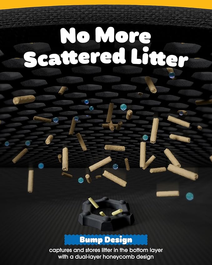 - EFFECTIVE LITTER CATCHER: The Powools double-layer kitty litter mat minimizes litter tracking and keeps floors tidy. The upgraded honeycomb holes on the top layer trap loose litter from the box and cat's paws, allowing it to fall through and collect securely in the bottom layer. Besides, this mat is suitable for all types of cat litter, including clumping, crystal, and pellet.