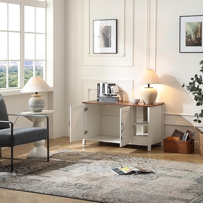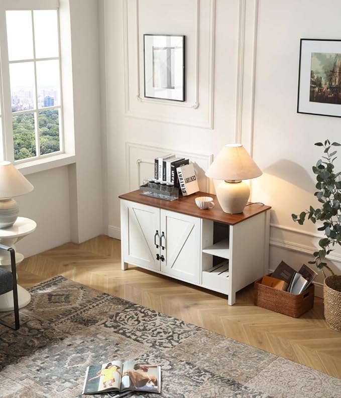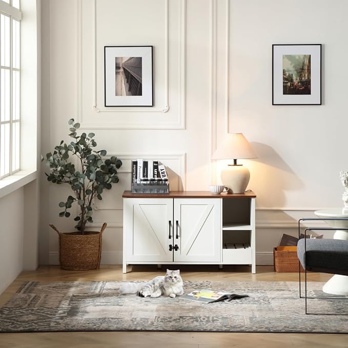 41.3'' Cat Litter Enclosure,Adjustable Shelf for Dog Proof and Storage,Locks Added for Cat, Litter Collector,Small Indoor Cat House,Antique White