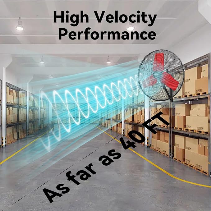 - Move Lots of Air: Fanniverse outdoor fan generates a maximum of 9500 CFM with a reach of around 40 ft. Perfect for outdoors, patios, garages, workshops, warehouse and factory.