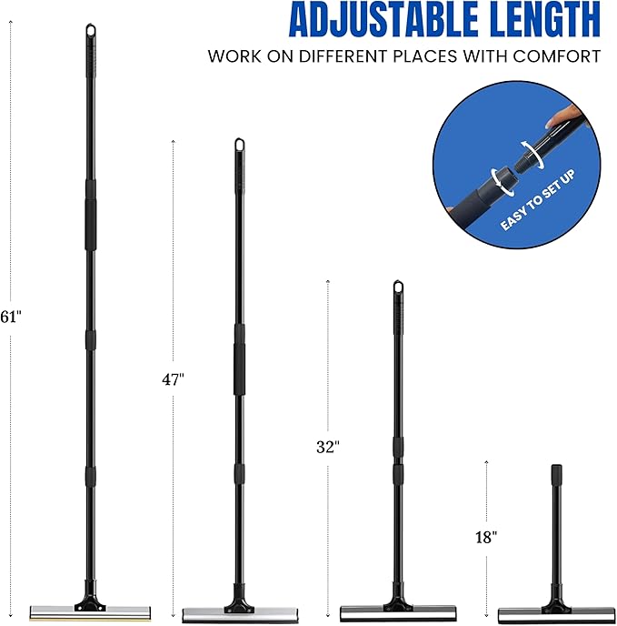 - ✅ Say Goodbye to Back Pain with 61" Adjustable Handle – Customize the length to your comfort, making it easy to reach under furniture and across large areas without bending or straining.