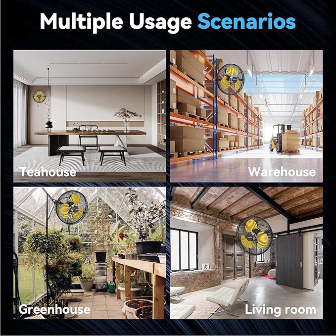 - ๐๐จ๐ฐ-๐๐จ๐ข๐ฌ๐ ๐๐๐ฌ๐ข๐ ๐ง - The black heavy-duty wall fan operates at a high speed of 9500 CFM with a noise level of only 65dB, which is lower than the industry standard, creating a quieter gathering or working environment