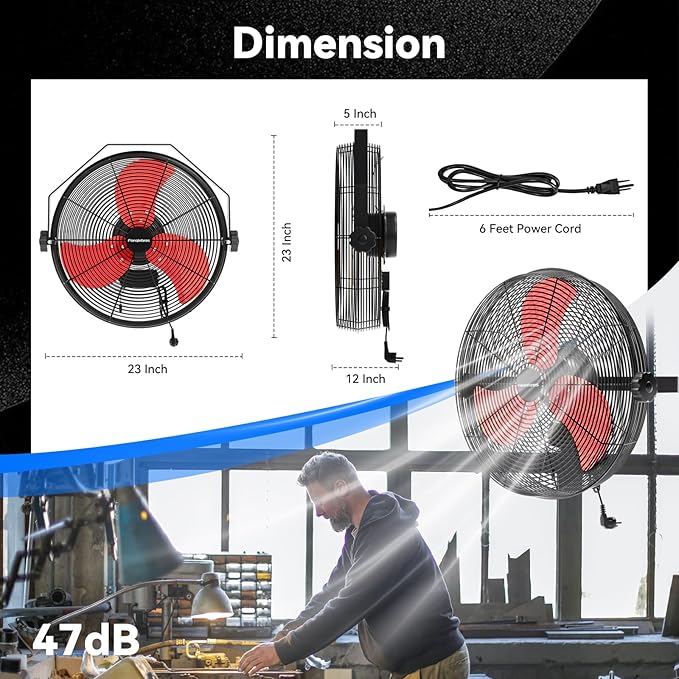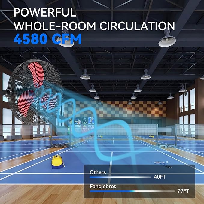 - 𝐋𝐨𝐰-𝐍𝐨𝐢𝐬𝐞 𝐃𝐞𝐬𝐢𝐠𝐧 - The heavy-duty wall fan operates at a high speed of 4580 CFM with a noise level of only 60dB, which is lower than the industry standard, creating a quieter gathering or working environment