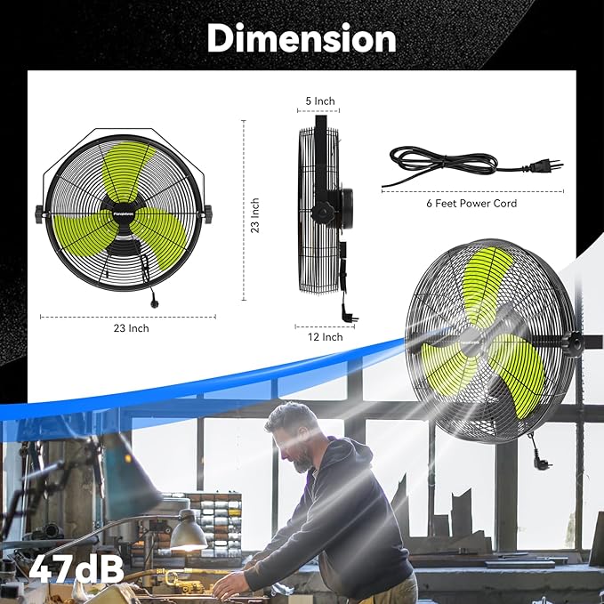 - 𝐋𝐨𝐰-𝐍𝐨𝐢𝐬𝐞 𝐃𝐞𝐬𝐢𝐠𝐧 - The heavy-duty wall fan operates at a high speed of 4580 CFM with a noise level of only 60dB, which is lower than the industry standard, creating a quieter gathering or working environment
