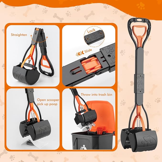 - No Bending Required: Adjustable long-handled Poop Scoop stands to clean dog waste with less tiredness, friendly to pregnant women and the elderly. Foldable Scooper Pooper and buckle set for easy carrying and storage.