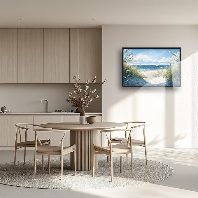 Framed Large Beach Wall Art for Living Room, Oversized Coastal Nautical Wall Decor Sailboat Canvas Seaside Pictures Modern Artwork Home Decoration for Living Room Bedroom Office 36"x24"