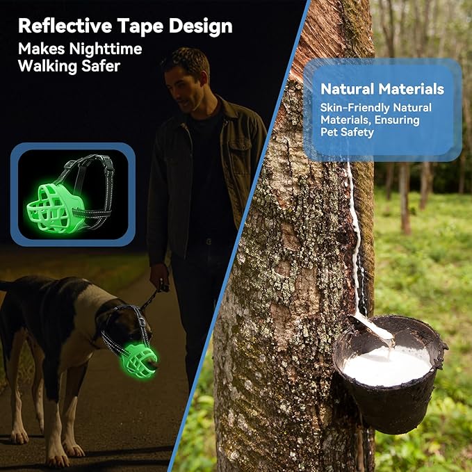 - Eco-Friendly Material for Safety and Durability: Our Dog Muzzle for Large Dogs is Crafted from Non-toxic, Environmentally Friendly TPR Silicone. This Lightweight yet Durable Material Is Odorless, Soft to the Touch, And Sturdy Enough to Resist Deformation, Ensuring Long-Lasting Use While Prioritizing Your Pet’s Safety
