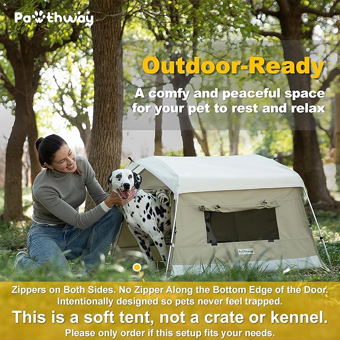 - This Is a Soft Tent, Not a Crate or Kennel: The door zips on both sides, with no zipper along the bottom edge—so your pet can rest or hide without feeling trapped or stressed. This is an intentional design, not a flaw. Do not leave your pet unattended inside the tent, especially in outdoor or unfamiliar settings. Please only order if this setup fits your needs.