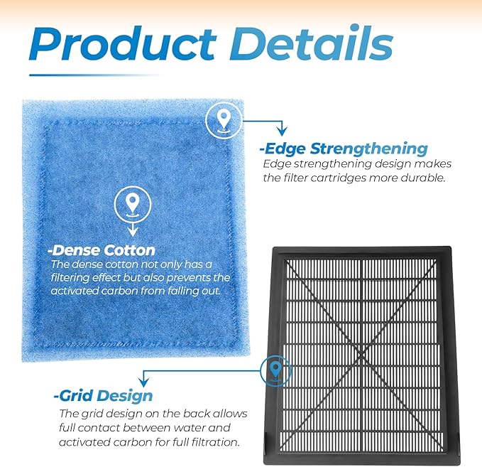 - 【EASY TO INSTALL】Before installation, please rinse the new filter cartridge c under cold water to remove carbon dust; then align the bottom key slot, insert the filter cartridges into the filter chamber. Simple and quick to install, allowing for hassle-free maintenance of your aquarium's filtration system.