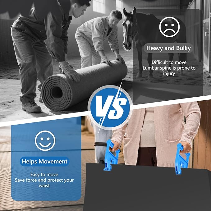 - Strong Handle and Plastic Teeth: Horse barn supplies featuring a sturdy handle and small plastic teeth, this mat handler securely lifts and moves heavy mats without bending or breaking, providing dependable functionality for heavy duty tasks.