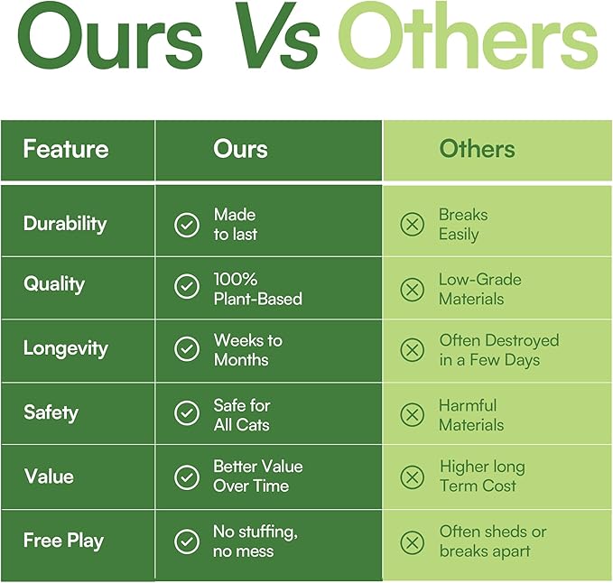 - πΏ 100% Natural Ingredients - Made entirely from plant-based ingredients you can trust: Catnip (Nepeta cataria), Catmint (Nepeta racemosa), and Polygonum officinale, a chew-safe wood from the kiwifruit family. No chemicals, no preservatives-just pure botanical joy for your cat.