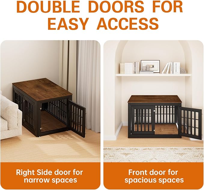 - 【Double Doors Design】The dog kennel furniture has a front door and a side door, your pet will go in and out easily with double doors. The double-doors design can adapt to more different space environments. You can decide whether to open the front door or the side door according to your needs.
