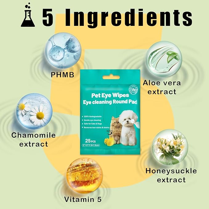 - Hypoallergenic & Naturally Soothing - Our pet eye wipes are infused with aloe vera, chamomile, and honeysuckle extracts to effectively combat eye irritation, remove tear stains and crusts, while neutralizing odors. Free from alcohol, dyes, and harsh chemicals, these gentle wipes are safe for all dogs' delicate eye and facial areas.