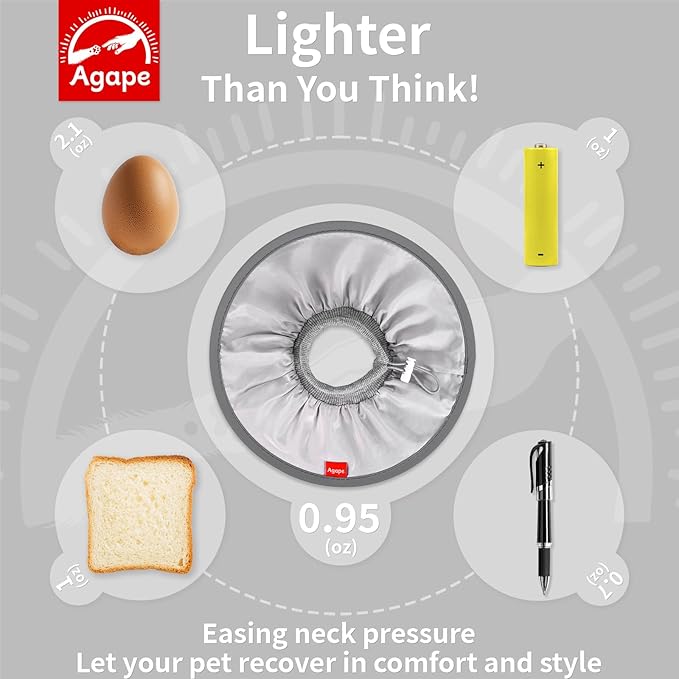 - 【Soft & Lightweight】Unlike bulky, uncomfortable cones on the market, Agape's cat cone is made with two layers of silky fabric and a ribbed knit collar, weighing just 0.9 ounces—about the same as a single AA battery. This ultra-light, breathable, and soft design ensures your cat can sleep peacefully and comfortably, without feeling any strain or restriction around their neck