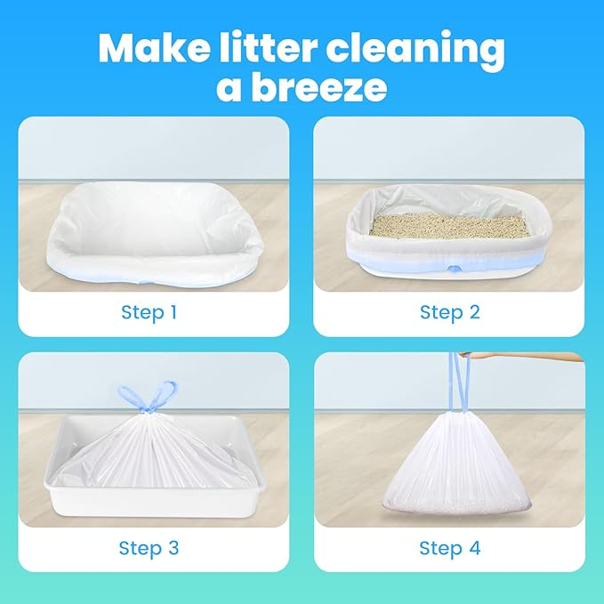 60 Pack Large Cat Litter Bags - 3MIL Extra Thick Leakproof Litter Box Liners, 31"x18" Heavy Duty Drawstring Cat Litter Liners for Automatic Litter Box, Odor Control Disposable Kitty Litter Bags 6 Roll