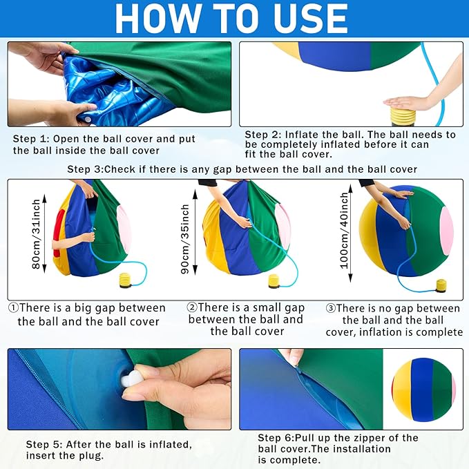 - Large Enough Size: when the horses toy is inflated to less than 40 inches, it cannot fit into the ball cover; Please continue to inflate it without worrying about the ball bursting; When it is inflated to 40 inches, it can fit into the ball cover completely without any gaps