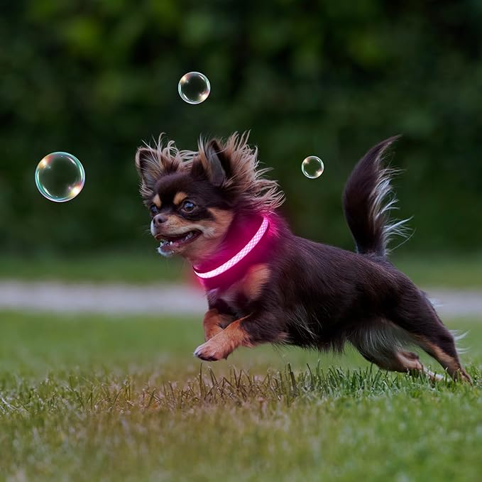 Flashseen LED Cat Collar,Light Up Dog Collar Rechargeable, Dog Lights for Night Walking, Comfortable Soft Mesh Pet Collar Adjustable for Cats Puppy and Small Dogs(Pink, XS)