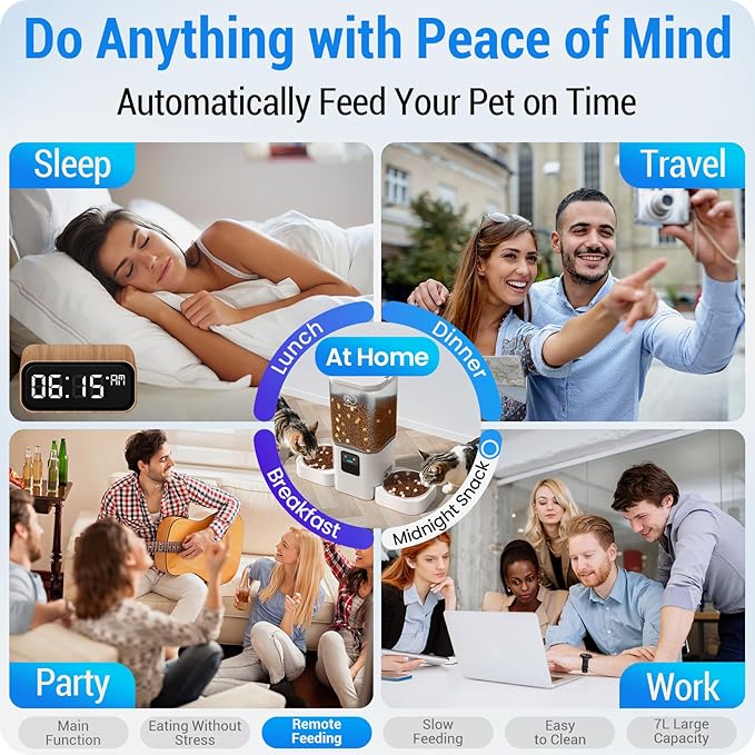 5G WiFi Automatic Cat Feeder with Slow Feed for 2 Cats: Automatic Dog Feeder with 7L Large Food Storage, Cat Food Dispenser with Alexa for Multiple Pets, Detachable for Easy Cleaning -29 Cup