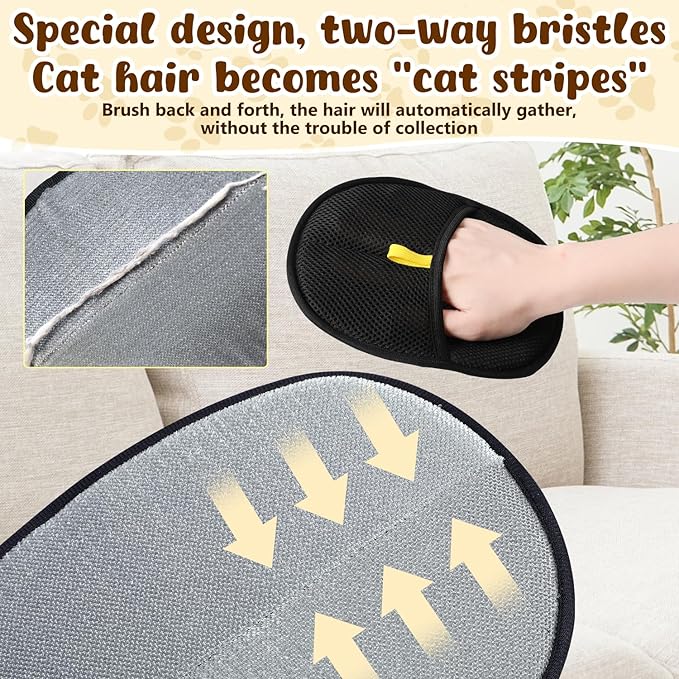 2Pcs Pet Hair Remover Glove,Static Pet Removal Gloves,Cat Grooming Gloves for Hair Removal,Reusable Double Sided Pet Hair Remover,for Couch,Furniture,Carpet,Curtain