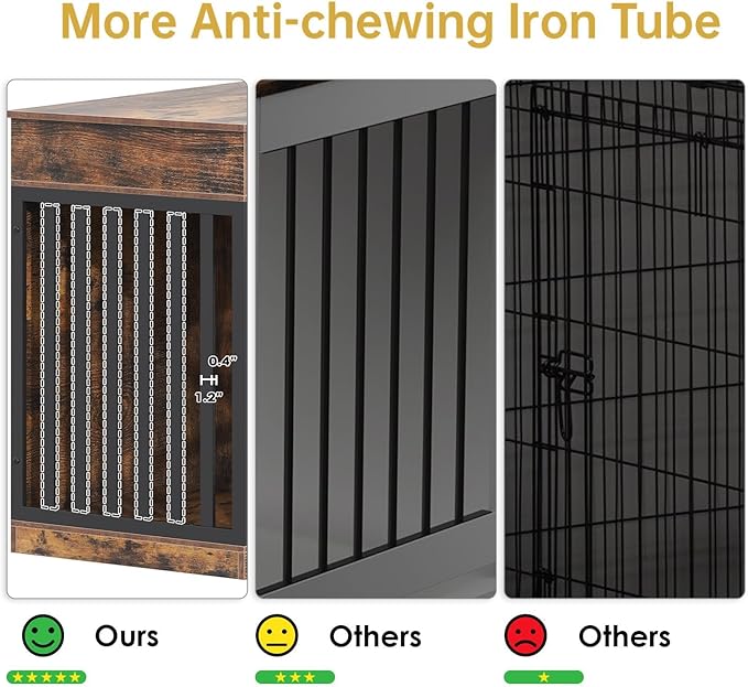- 【Chew-Proof Security for Determined Pets】Outsmart even the most persistent chewers. Steel-reinforced corners and dense particle board resist teeth marks and scratches, while dual-lock doors prevent escape artists from nudging open—giving you peace of mind during work hours or errands