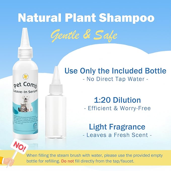 - 【One-Click Hair Removal】: After brushing, press the button to release collected hair instantly – saves time and keeps the brush clean. Please refill water using the included bottle only.