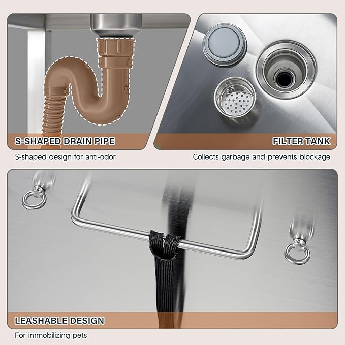 - Durable and Long-Lasting:The Dog Wash Tub is made of premium 304 stainless steel, offering excellent durability and corrosion resistance. Its smooth surface ensures easy cleaning after each pet bath.