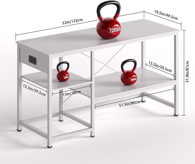50-75 Gallon Fish Tank Stand with Power Outlet & LED Light, Metal Aquarium Stand with 3 Tier Adjustable Storage Shelves, Tank Stand for Reptile Tank, Turtle Tank, 52" L*19.5" W, White