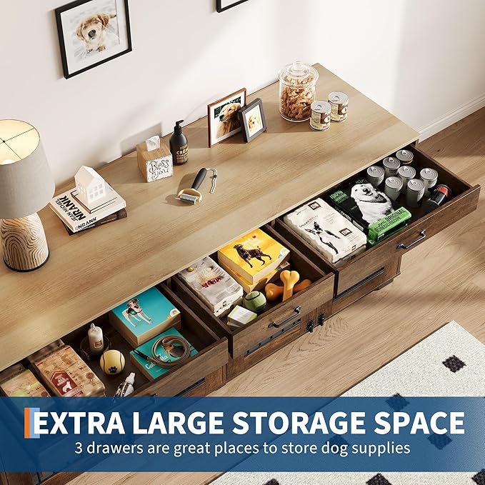 - Three-drawer smart storage: Three convenient drawers keep your home organized. Perfect for storing pet essentials such as pet toys, snacks and food, and even household items, helping you maintain a neat and organized space.