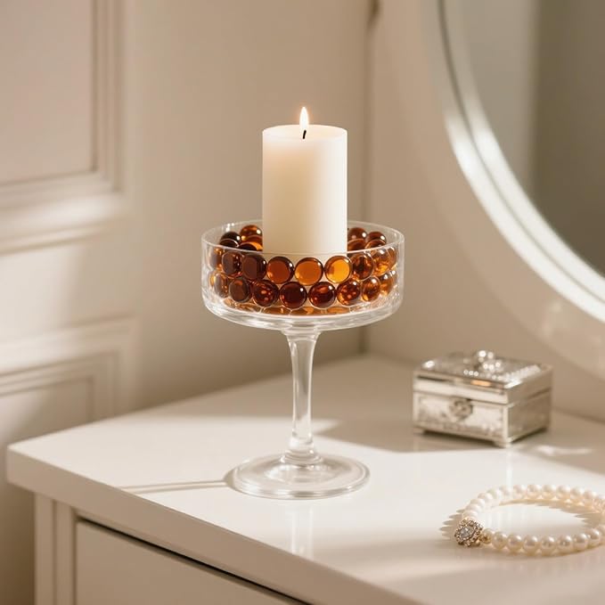 2.16LB Glass Beads Vase Filler Aquarium Gravel Decor Flat Glass Marbles Gems Pebbles Fish Tank Rocks Home Decorative Art Craft - Amber