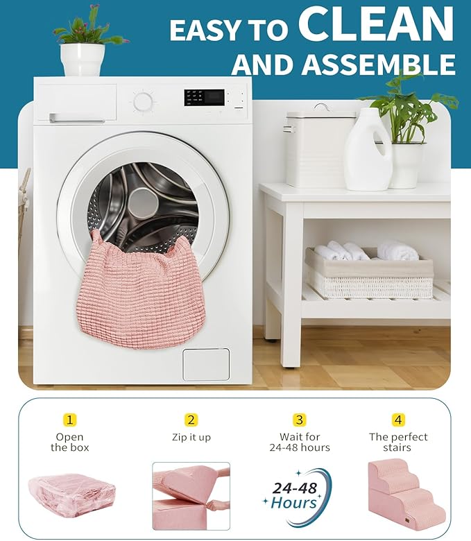 - Easy to Clean - The dog stairs feature a removable, machine washable cover for effortless cleaning. Using without assemble, our pet stairs provide a safe and convenient way for your furry friend to access higher surfaces without the risk of injury or strain on their joints