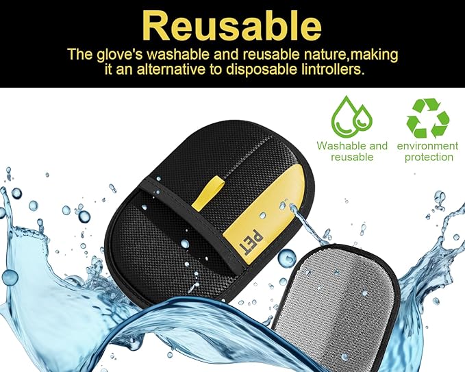 - 🐱【Pet Hair Removal Glove for Reusable】 Say goodbye to wasteful sticky sheets ant lint roller! These pet hair removal gloves are washable and reusable, making them a sustainable choice that saves you money and reduces environmental impact. and Cleanup is a breeze—just rinse it with water or toss it in the washer after a thorough session. No hassle, no fuss!